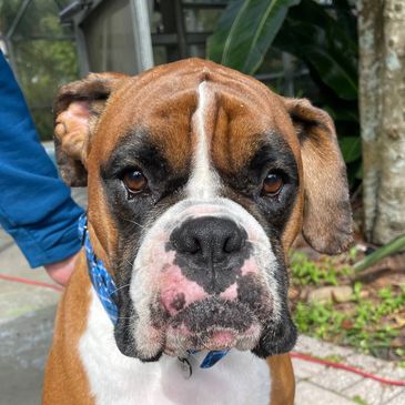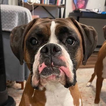 Phoenix is a beautiful and powerful female Boxer dog. She has vowed to serve and protect as the ResQ Squad's commanding officer. Phoenix is serious about food, farting, chin rubs, snuggles and lizards. She is a dedicated companion service animal and has faith in humanity.